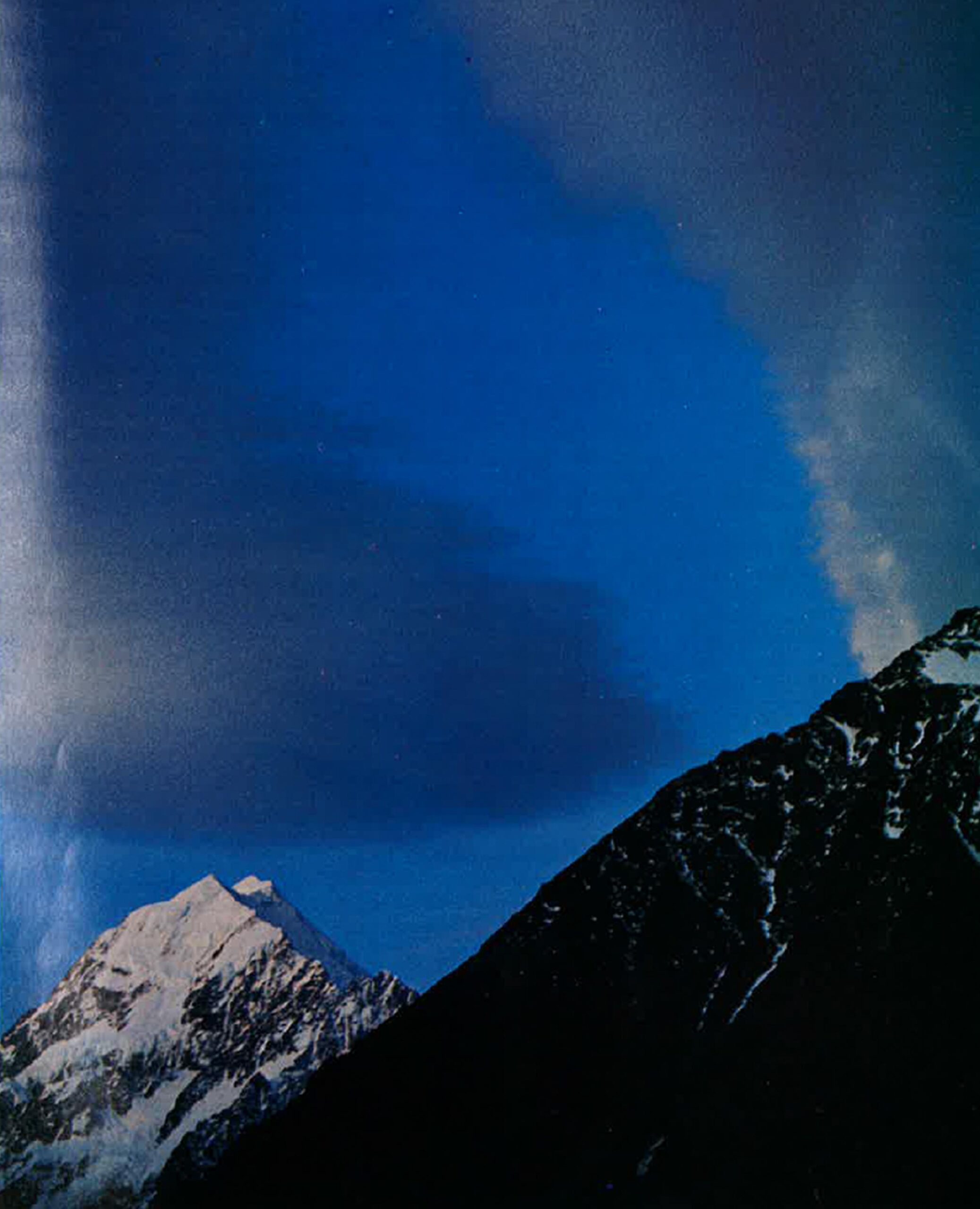 Called Aoraki, “the cloud piercer”, by Kāi Tahu, it is a moody mountain, isolated, dominating the South Island Main Divide and providing a constant challenge for mountaineers from all over the world. On a good day, Aoraki’s west side is smooth ice and snow; the east, jagged rocks and cliffs of ice stab the skyline.
